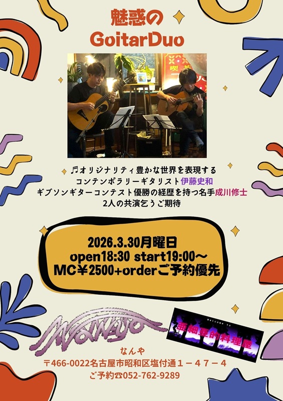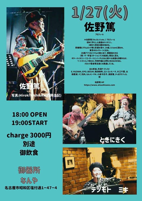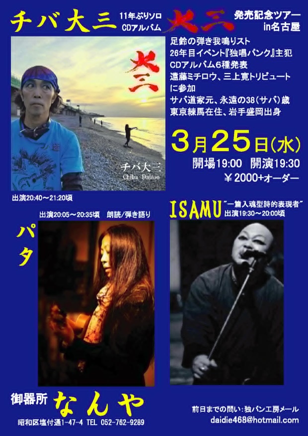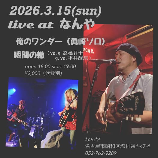 ★予約受付方法: 公演前日までに、なんや052-762-9289まで電話で、または、メールnanyagokiso@wing.ocn.ne.jp 宛メールまたは メールでの予約をお願いいたします。イベント名とその日付、お名前と人数、連絡先をお知らせくださいませ。