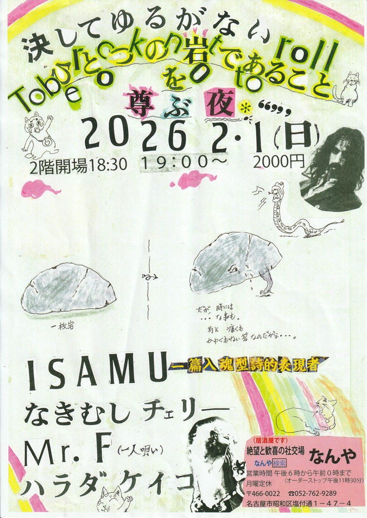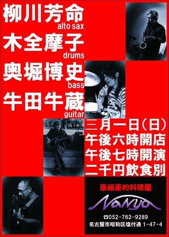 1月16日(金) ライブ 2階開場19:00 開演19:30 予約3500円 当日4000円