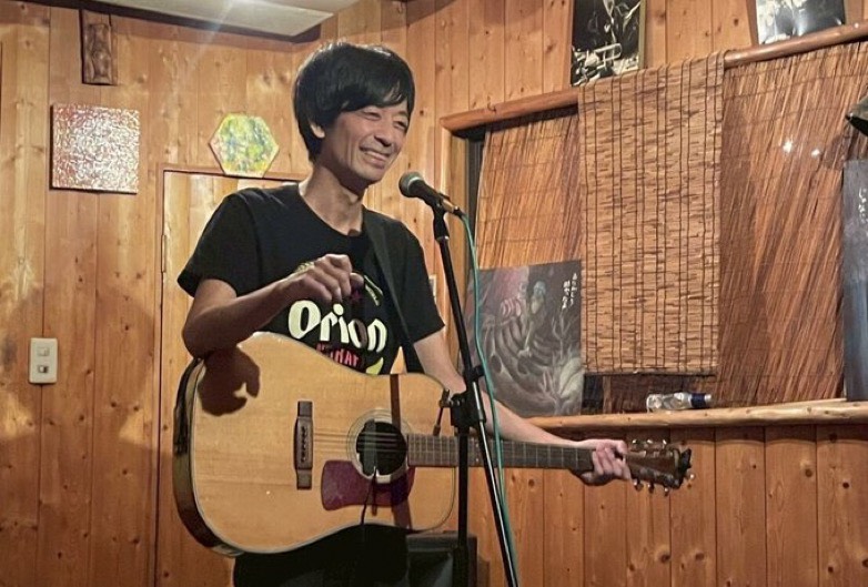 フォークギターをマルチエフェクトペダルで荒っぽく、エレキギター的アプローチで掻き鳴すシンガーソングライター 華村灰太郎。