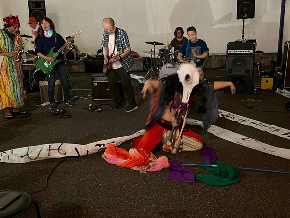即興を大人数で、ただひたすらやり続ける会。自分の音が聞こえようが聞こえまいが、関係なく重ねていく。パフォーマーの動きが楽しいなあ。音も楽しいな。