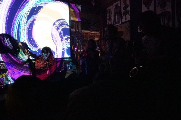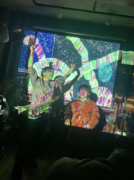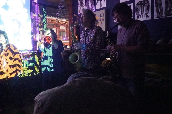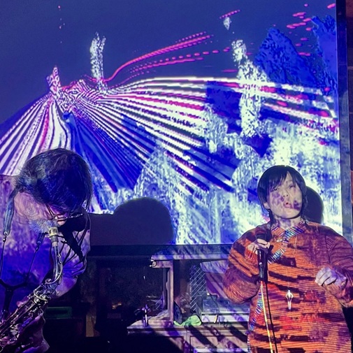 松井智恵美(デジタルライブペインティング)+登敬三(ts)+石渡岬(tp,vo)+あたしよしこ(パフォーマンス)