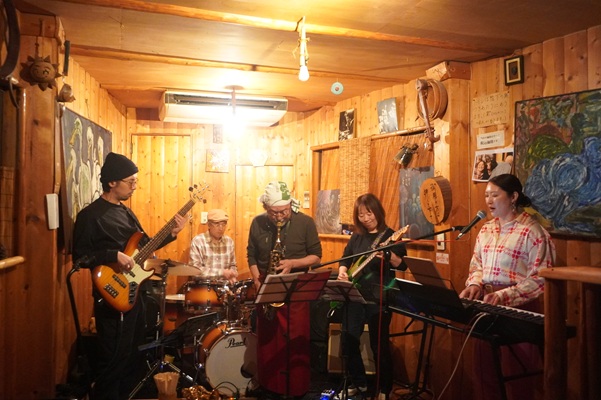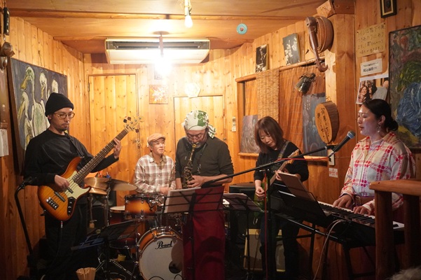 人間万事塞翁が馬バンド[puyo(as)+YUZUMI(vo,key)+G子(g)+笠井トオル(b)+近藤久峰(ds)]
