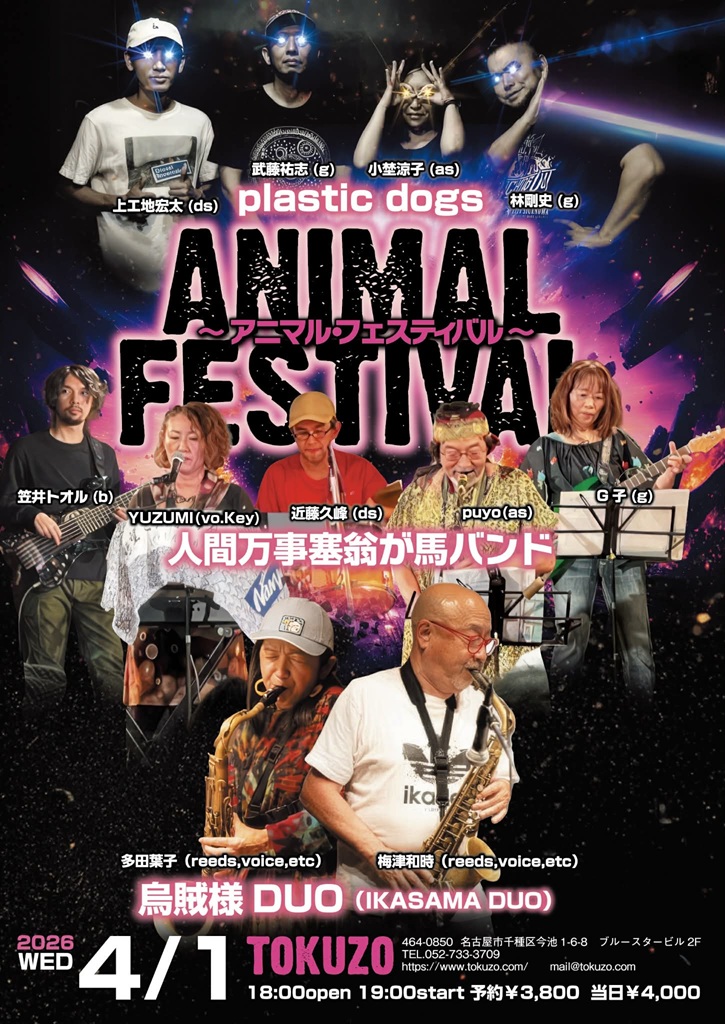 4月1日(火) @TOKUZO 開場18:00 開演19:00 予約3300円 当日3500円