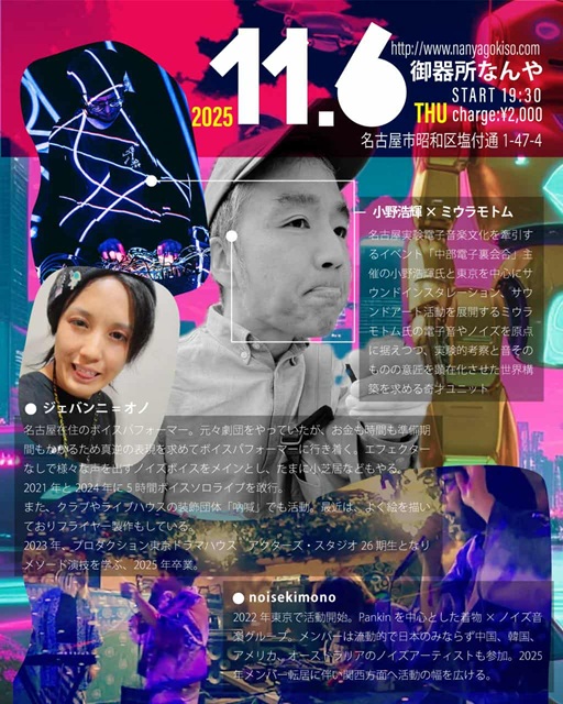 即興演奏による単なる無計画な行為ではなく熟練された技術と創造性の交差点に位置する高度な表現を「偶然」をテーマに各自の自由な作曲形式で演奏します。型破りの緊張感溢れる予期せぬ展開を目撃してください!