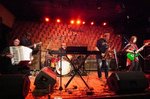 ・人間万事塞翁が馬バンド[puyo(as)+谷向柚美(vo,key)+G子(g)+笠井トオル(b)+近藤久峰(ds)]
