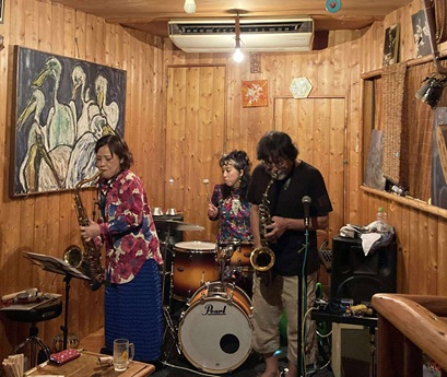 二日続けて、同じ楽器編成でライブ。ベースは同一人物。これはこれは、楽しそうだ。そして久しぶりの木全摩子さん。こんなライブが組めて超うれしい。来、て、ね〜。