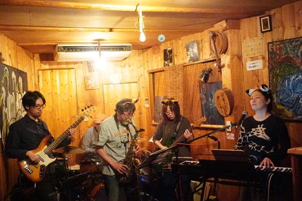 人間万事塞翁が馬バンド[puyo(as)+YUZUMI(vo,key)+G子(g)+笠井トオル(b)+近藤久峰(ds)]